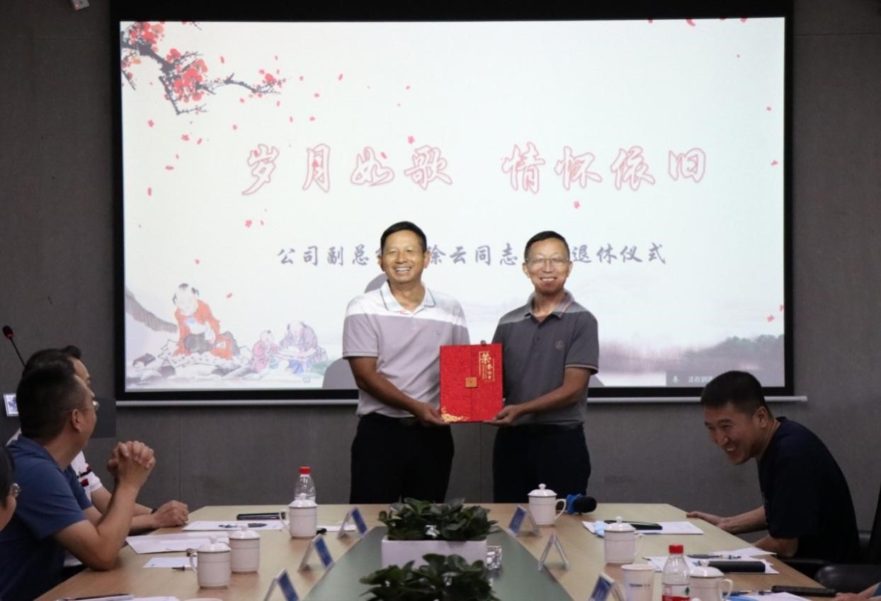 會議期間,公司為副總經(jīng)理徐云先生舉行了一場溫馨的榮休儀式。公司總經(jīng)理萬泗新暖心致辭,常務(wù)副總經(jīng)理張體貴為徐云先生頒發(fā)榮休證書并送上榮休紀(jì)念品,隨后徐云先生發(fā)表榮休感言,大家紛紛為他送上最誠摯的祝福。