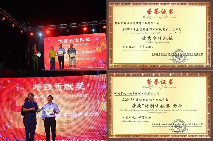 歷時(shí)近兩年半的施工過(guò)程中,項(xiàng)目部秉承“嚴(yán)于要求、精于技術(shù)、善于建設(shè)、服務(wù)甲方”的管理理念,嚴(yán)格按照技術(shù)標(biāo)準(zhǔn)、設(shè)計(jì)工期要求進(jìn)行施工作業(yè),主動(dòng)做好與總包單位及相關(guān)合作單位溝通與協(xié)作,保安全、保質(zhì)量、保進(jìn)度,最終順利完成了建設(shè)任務(wù)。項(xiàng)目團(tuán)隊(duì)積極配合各項(xiàng)管理要求,同時(shí)改進(jìn)施工工藝,多次超前完成節(jié)點(diǎn)工期目標(biāo),為項(xiàng)目整體工程質(zhì)量的提升和甲方要求節(jié)點(diǎn)的提前交付做出了巨大貢獻(xiàn),也為該工程榮獲“國(guó)家優(yōu)質(zhì)工程獎(jiǎng)”奠定了堅(jiān)實(shí)基礎(chǔ),因此先后收到了甲方的多封感謝信,獲得了“特別貢獻(xiàn)獎(jiǎng)”“優(yōu)秀合作隊(duì)伍”等多項(xiàng)榮譽(yù),這是對(duì)港灣工程公司在該項(xiàng)目中所付出的努力予以充分肯定。
