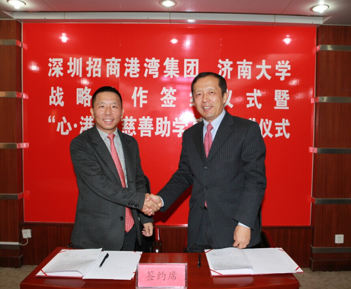 隨后,程新校長和劉裕總裁分別代表雙方在《濟(jì)南大學(xué) 深圳市招商港灣集團(tuán)有限公司戰(zhàn)略合作協(xié)議書》上簽字。根據(jù)協(xié)議,雙方將本著優(yōu)勢互補(bǔ)、互惠互利、長期合作的原則,在設(shè)立慈善助學(xué)基金,提供智力、信息和技術(shù)支持,支持科研項(xiàng)目、創(chuàng)新創(chuàng)業(yè)、學(xué)生實(shí)訓(xùn)、就業(yè),建立互動(dòng)交流機(jī)制,持續(xù)推進(jìn)戰(zhàn)略合作等方面加強(qiáng)合作。
