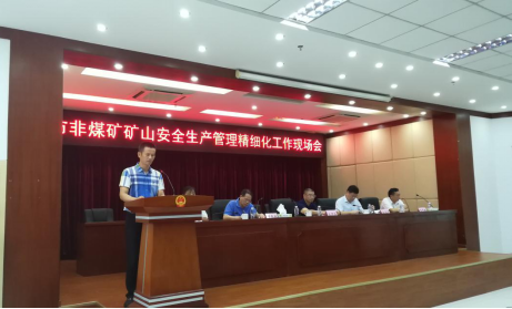 燊泰基石場總經(jīng)理劉曉龍在會上分享交流了燊泰基開展安全生產(chǎn)管理精細化工作以來的做法與心得。