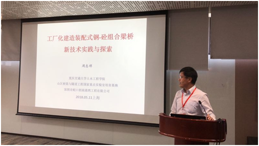 深圳市蛇口招商港灣工程有限公司特聘首席專家、產(chǎn)學(xué)研合作單位重慶交通大學(xué)周志祥博士應(yīng)邀主持了5月10日上午“橋梁及道路工程主體論壇”,并做了《工廠化建造裝配式鋼-砼組合橋梁新技術(shù)實(shí)踐與探索》的特邀報(bào)告,介紹了基于汽車制造理念探索全工廠化建造鋼-砼組合橋梁的結(jié)構(gòu)、技術(shù)與裝備的部分研究及實(shí)踐工作。其創(chuàng)新探索精神受到與會(huì)代表的熱議和贊揚(yáng),會(huì)后數(shù)位代表主動(dòng)與周志祥博士進(jìn)行進(jìn)一步的交流和探討。