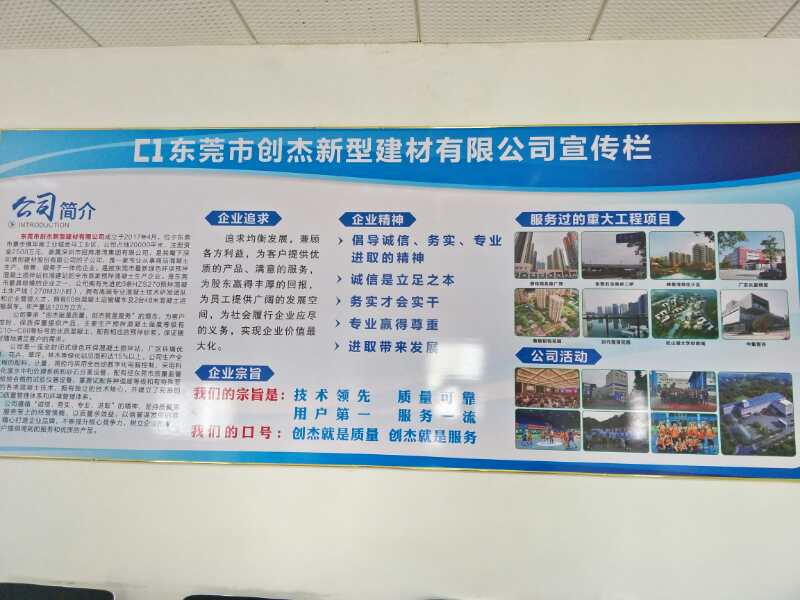 東莞市創(chuàng)杰新型建材有限公司隸屬深圳市招商港灣集團有限公司,是其旗下深圳港創(chuàng)建材股份有限公司的全資子公司,是按東莞市最新綠色環(huán)保預拌混凝土攪拌站標準建站的東莞市首家預拌混凝土生產(chǎn)企業(yè),是東莞市同行業(yè)最具規(guī)模的企業(yè)之一。公司占地約20000平方米,擁有國內(nèi)最先進的HZS270預拌混凝土生產(chǎn)線(270M3/小時),擁有高端專業(yè)混凝土技術研發(fā)團隊和企業(yè)管理人才,擁有52臺混凝土運輸罐車,年產(chǎn)量將達到100萬立方以上。