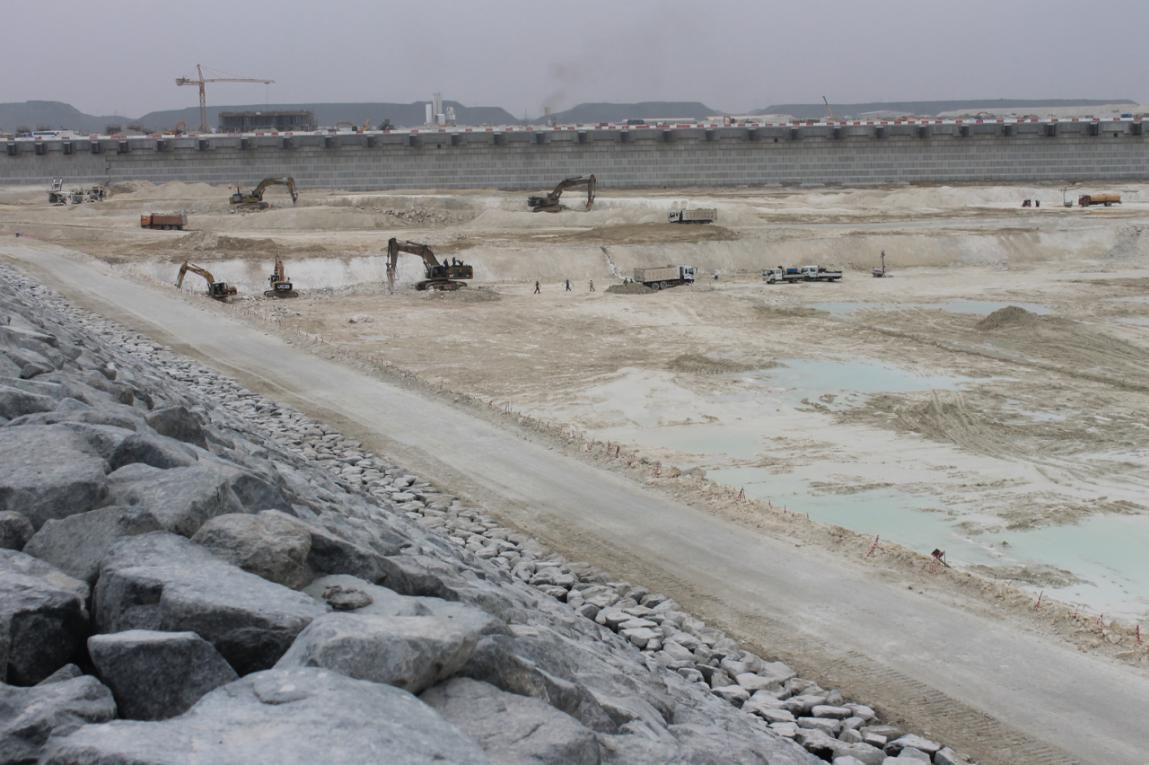卡塔爾多哈新港項目為內(nèi)挖式港口項目,包括綜合集裝箱碼頭、通用碼頭、件雜貨碼頭、車輛滾裝碼頭、面粉碼頭、牲畜碼頭、海岸警衛(wèi)隊碼頭和游輪碼頭等。項目采用降水干地開挖方法施工,主要工作內(nèi)容包括土石方開挖、后方回填及地基處理、碼頭及護(hù)岸防波堤等。碼頭結(jié)構(gòu)型式為重力式方塊碼頭,集裝箱碼頭的方塊層數(shù)為11層(最大單塊重量約100噸),最大深挖為-19.7米,港池底標(biāo)高為-17米。碼頭岸線長7845米,防波堤2.76公里,土石方開挖約7000萬方,預(yù)制/現(xiàn)澆混凝土方塊4萬塊(混凝土量約140萬方)。招港國際公司主要負(fù)責(zé)近1000萬立方港池爆破及邊坡治理。