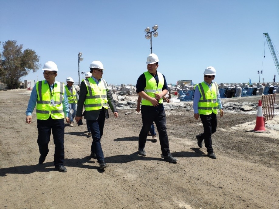 科威特時間4月24日,中國港灣工程有限責(zé)任公司副總經(jīng)理贠亮在中國港灣中東區(qū)域管理中心副總經(jīng)理鄭建軍、科威特辦事處總經(jīng)理黃祖華的陪同下,視察了招商建設(shè)國際有限公司科威特國家衛(wèi)隊游艇碼頭項目。這是贠總第二次視察科威特游艇碼頭項目。