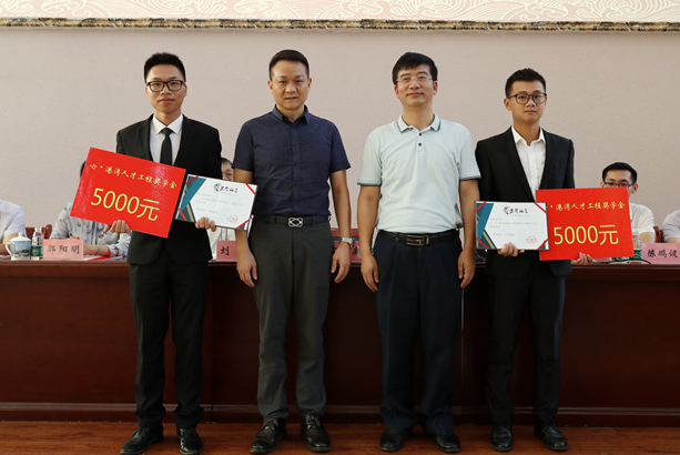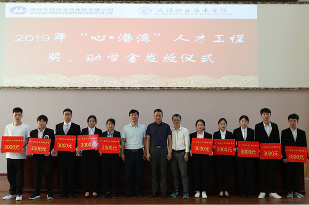 集團(tuán)人力資源部總經(jīng)理劉晉宣讀了獲獎(jiǎng)、助學(xué)金學(xué)生名單。汪永根副校長(zhǎng)、萬(wàn)泗新副總裁以及校企相關(guān)部門領(lǐng)導(dǎo)一起為“心·港灣”獎(jiǎng)、助學(xué)金獲得者頒發(fā)了獎(jiǎng)、助學(xué)金。