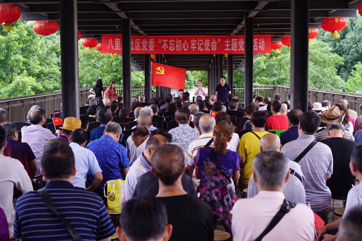 為紀(jì)念中國共產(chǎn)黨成立98周年,6月28日,成都市成華區(qū)府青路街道八里莊社區(qū)黨委在蒲江縣西來古鎮(zhèn)舉行“不忘初心,牢記使命”主題黨日活動?;顒友埩松鐓^(qū)各黨支部及轄區(qū)內(nèi)各企業(yè)黨支部170余人參加,四川招港建設(shè)有限公司黨支部書記饒瑤帶領(lǐng)公司黨員代表及入黨積極分子共8人到場參加活動。
