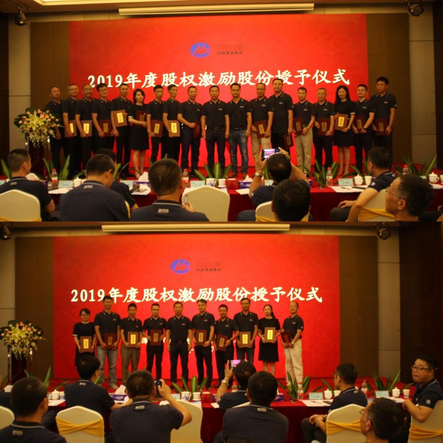 徐總匯報2018年度股權(quán)激勵實施暨2019年度股份授予情況說明后,舉行了2019年度股權(quán)激勵股份授予儀式;還宣講了以集團成立十周年為契機提出的《“十年功勛獎”管理辦法(討論稿)》。