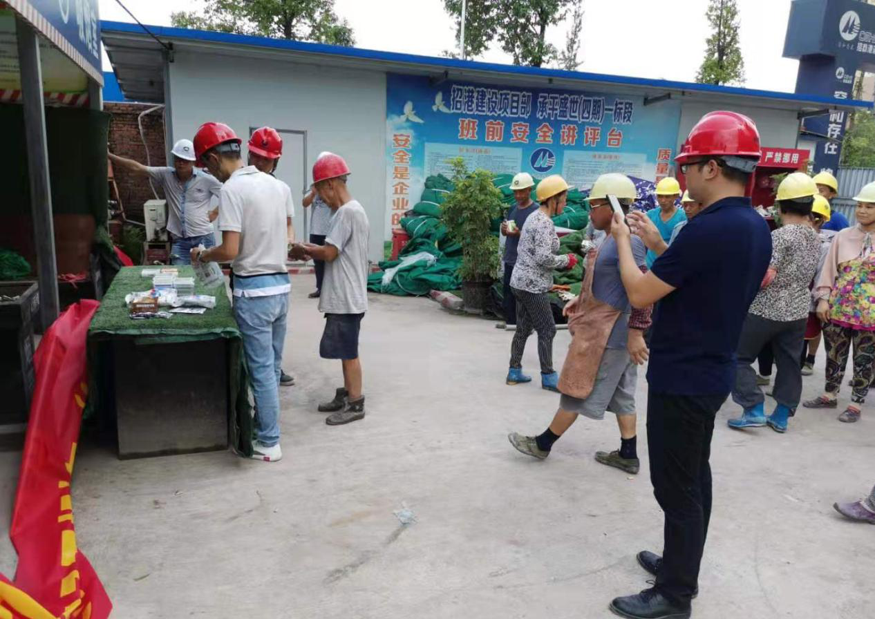 建設(shè)單位工程部經(jīng)理郭超文、施工單位招港建設(shè)公司安全負(fù)責(zé)人張成和對高溫天氣下仍然堅守在一線的工作人員表示衷心感謝,為他們發(fā)放了精心準(zhǔn)備的十滴水、藿香正氣液、清涼沖劑、風(fēng)油精等一系列防暑降溫用品,還叮囑大家夏季高溫作業(yè)時,注意防暑降溫、保重身體,切實保障安全生產(chǎn)。