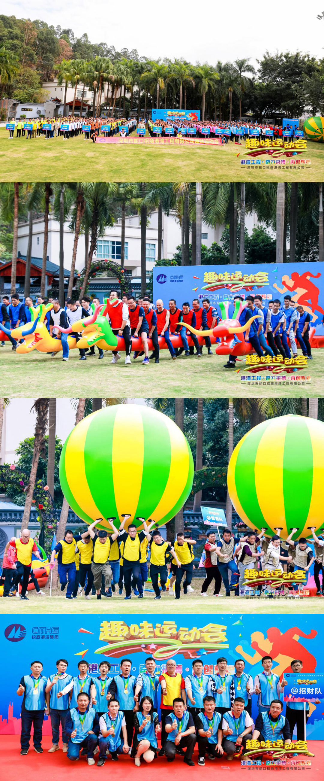為展現(xiàn)公司員工精神風(fēng)貌,營造健康向上、團(tuán)結(jié)和諧的氛圍,當(dāng)天上午,公司舉辦了以“港灣工程?奮力拼搏?再創(chuàng)輝煌”為主題的趣味運(yùn)動(dòng)會(huì)。為增強(qiáng)運(yùn)動(dòng)的趣味性,體現(xiàn)比賽的競爭性,突顯活動(dòng)的團(tuán)隊(duì)性,比賽設(shè)置了鴻運(yùn)當(dāng)頭、千足毛毛蟲、龜兔賽跑、超級障礙賽等4個(gè)項(xiàng)目。這是一場充滿激情、活力的歡樂運(yùn)動(dòng)會(huì),現(xiàn)場加油聲、吶喊聲此起彼伏,場面熱鬧非凡,以團(tuán)隊(duì)為單位,以運(yùn)動(dòng)為載體,最后“招財(cái)隊(duì)”勇奪運(yùn)動(dòng)會(huì)冠軍,公司總經(jīng)理李權(quán)鋒為他們頒發(fā)了勝利的獎(jiǎng)牌。