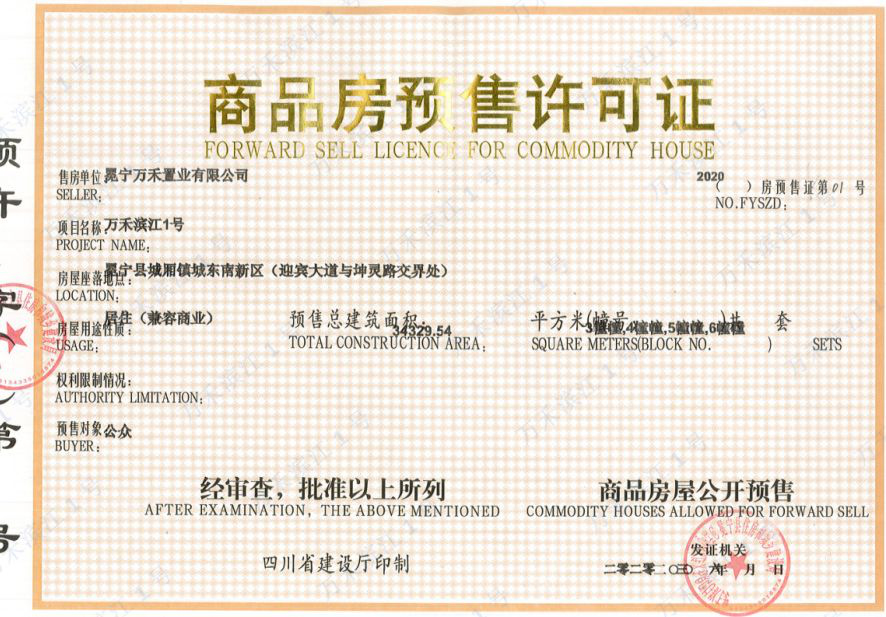 · 項目推廣名為“冕寧萬禾置業(yè)有限公司”;